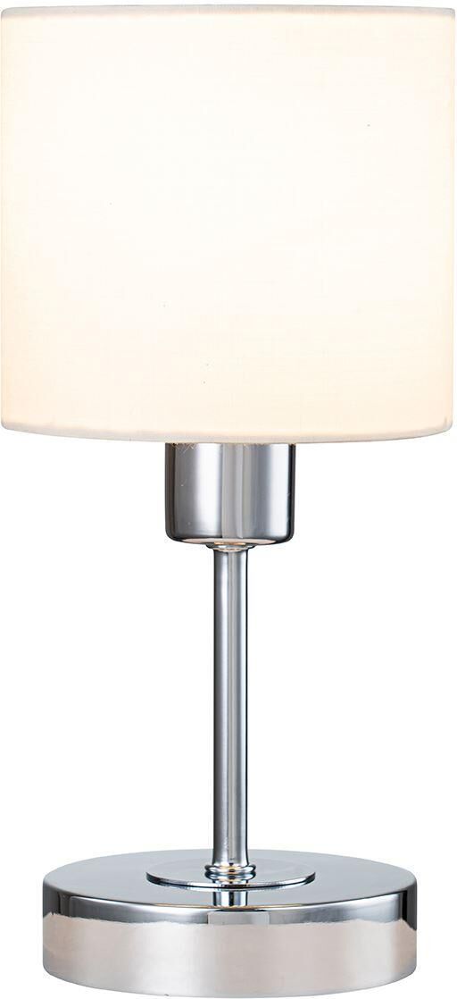 Настольный светильник 1х40Вт Е14, металл/ткань, хром/бежевый