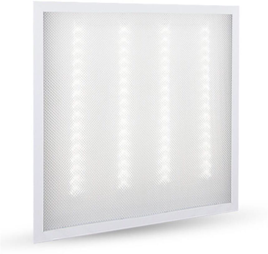 Панель светодиодная . Мощность 36 Вт, цветовая температура 6500К, размер 595х595х17мм, источник света - встроенные светодиоды, световой поток - 3600лм, индекс цветопередачи (Ra) 80+, коэффициент пульсации <5%, степень защиты IP40, корпус выполнен из металла, призматический рассеиватель из пластика, встроенный блок питания.