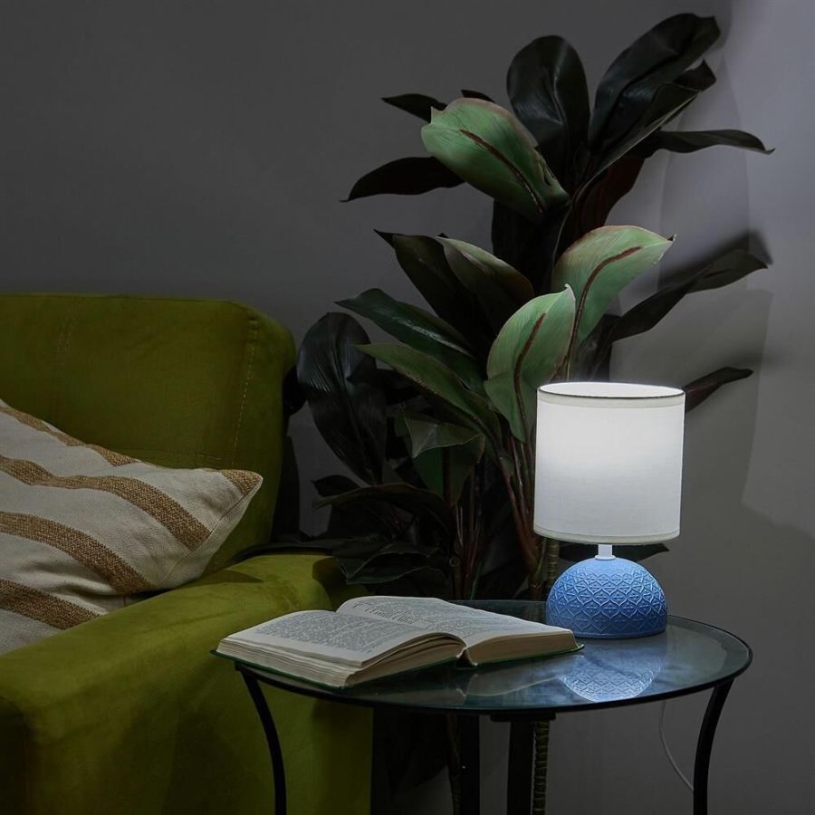 Светильник настольный, Цоколь E14 Способ установки настольный Патрон E14 Мощность, Вт 40 Входная частота, Гц 50 Входное напряжение, В 230 Частота, Гц 50 Выходное напряжение, В 230 Угол светового потока, ° 360 Высота изделия, мм 240 Вес изделия, гр. 500 Длина провода, м 1,3 Материал корпуса (изделия) керамика, сталь, ткань Цвет корпуса (изделия) голубой