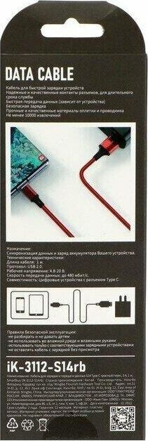 Кабель для зарядки и передачи данных, тип разъема -Type C, максимальный ток 3А, скорость передачи данных - до 480 мбит/с, длина - 2,0 м.