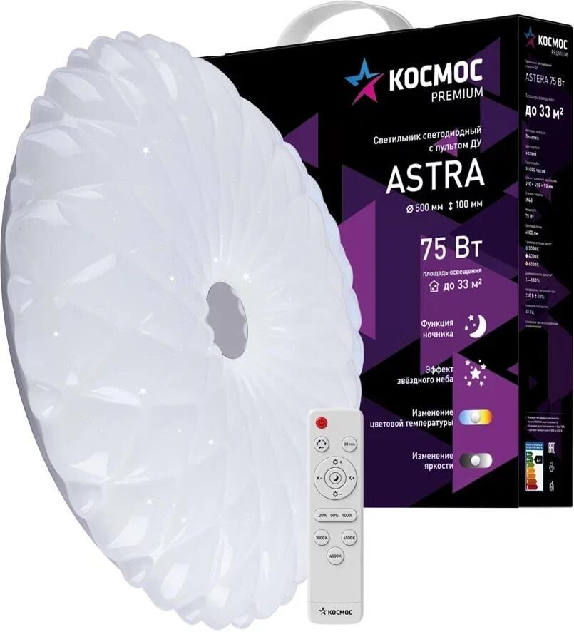 Светодиодный настенно-потолочный светильник Космос Premium Astra - прекрасное решение для организации основного или дополнительного освещения офисных, торговых или жилых помещений. Минималистичный эко дизайн напоминающий цветок. Регулировка цветовой температуры и мощности светового потока от 10 до 100% позволяет моделировать освещение по вашему вкусу. Имеется функция ночника. Доступны светильники с 3-я различными уровнями мощности для различных помещений, 55/75/120 Вт.