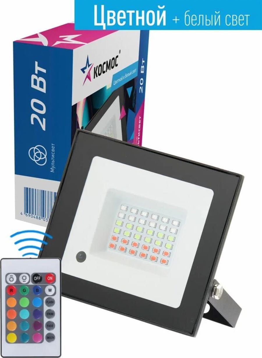 Светодиодный RGB прожектор Космос 20 Вт предназначены для декоративного освещения архитектурных объектов, фасадов зданий, сооружений, памятников, создания световых эффектов, фоновой подсветки. Прожектор управляется с помощью радиоканального пульта ДУ и им