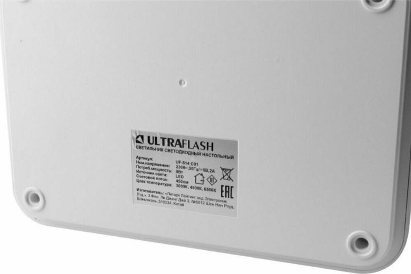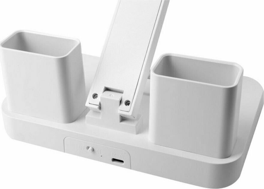 Светильник светодиодный настольный Ultraflash UF-814 с подставкой для письменных принодлежностей и телефона предназначен для освещения индивидуального рабочего пространства. Наличие аккумулятора обеспечивает мобильность светильника. Основные характеристики: Цвет белый, источник света - встроенные светодиоды, мощность 9Вт, световой поток 450Лм, три цветовые температуры 3000К, 4500К, 6500К, диммируемый, питание от сети и аккумулятора, время работы от аккумулятора 6-8ч, материал пластик. Складной механизм обеспечивает компактное хранение и транспортировку. Гарантия 12 месяцев.