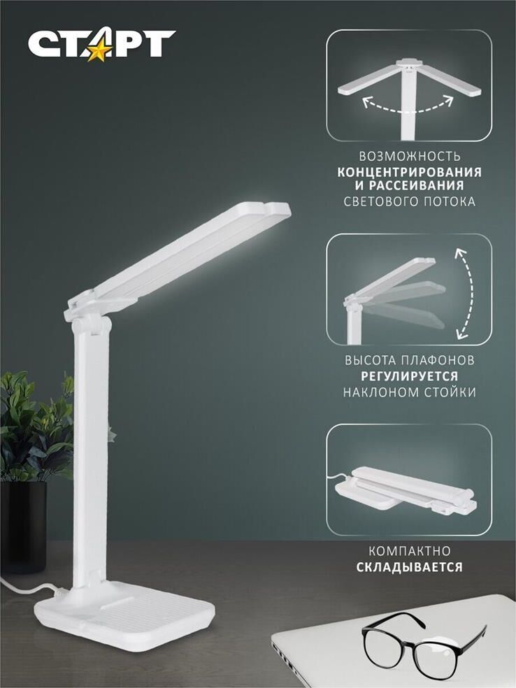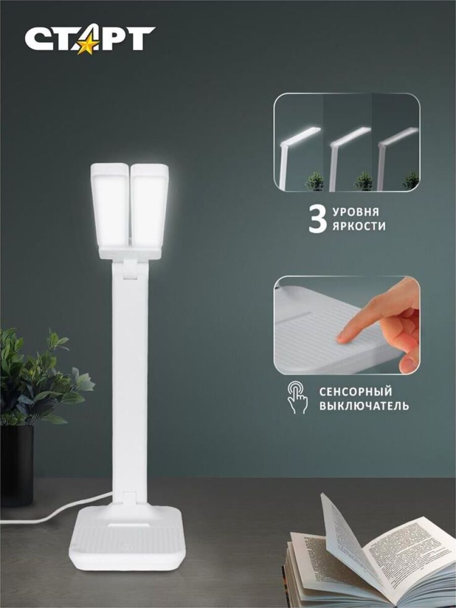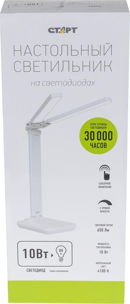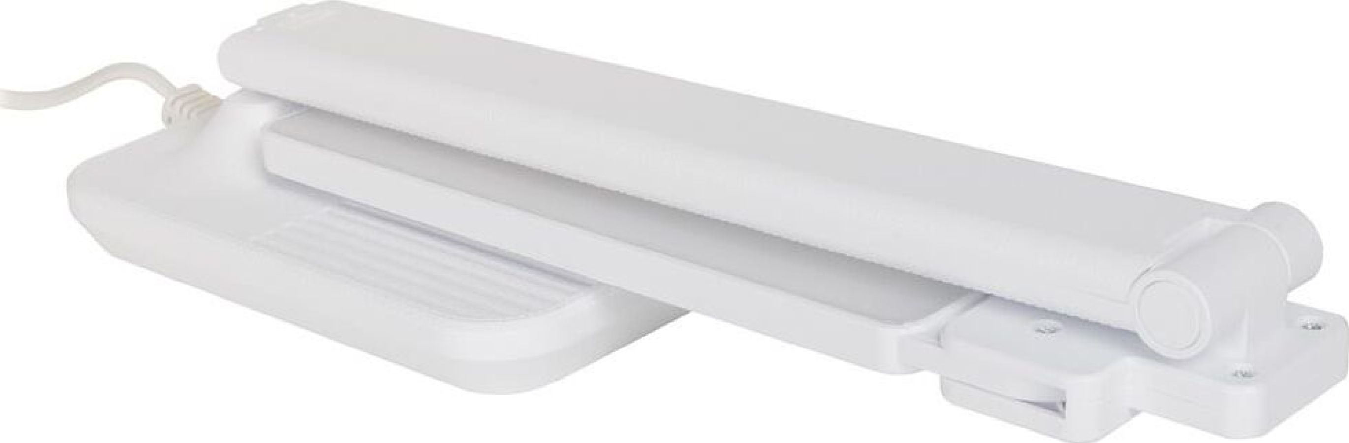 Мощность: 10 Вт Цветовая температура: 4100 K Световой поток: 650 Лм Материал: пластик/метал Размер: 300x150x370 мм Сенсорный выключатель, три уровня яркости, расширенная площадь освещения Высота расположения плафона регулируется сгибающейся стойкой. Нап