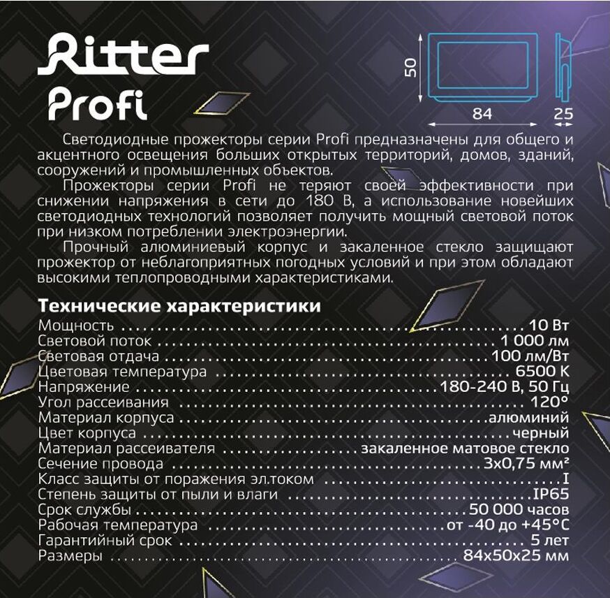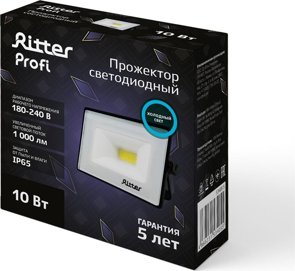 10 Вт, 6500К, 1000Лм, IP65, черный, гарантия 5 лет