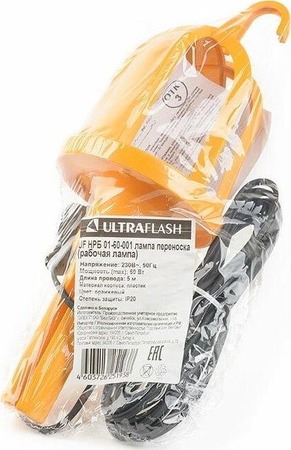 Используется переноска для освещения зон, где стационарные источники света не предусмотрены или временно отсутствуют. Длинный шнур позволяет легко перемещать лампу переноску и применять его в труднодоступных местах. Светильник пригодится во время строительства и ремонта, для освещения хозяйственных построек, при проведении работ, для которых необходим яркий точечный свет. Лампа-переноска UF НРБ 01-60-001 (220В, 60Вт, 5 м), размер 95х95х430мм, источник света - ЛОН, тип лампы - 60/A/Е27, патрон - E27, мощность 60Вт, ~230 В, 50 Гц.