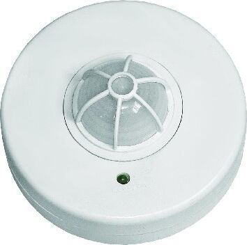 Электронный сенсор включения освещения, потолочный, настраиваемый, максимальная мощность нагрузки: 1200/300 Вт, максимальный угол обзора: 360 °, рекомендуемая высота установки: 1,5-3,5 м.