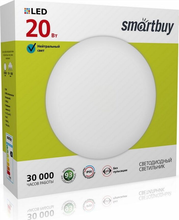 Характеристики SBL-White-20-Wt-6K Цветовая температура, К 6000 Мощность, Вт 20 Световой поток, Лм 1200 Светодиоды SMD Размер, мм 300*100 Индекс цветопередачи, CRI >80 Коэффициент мощности, cos? >0,9 Коэффициент пульсации светового потока, % >5 Диапазон рабочих температур, 0С от -20 до 4 Ресурс работы светильника, часов >30 000 Угол свечения, градусов 120 Цвет корпуса Белый Напряжения питания, В 185-265 Пылевлагозащита, IP IP20