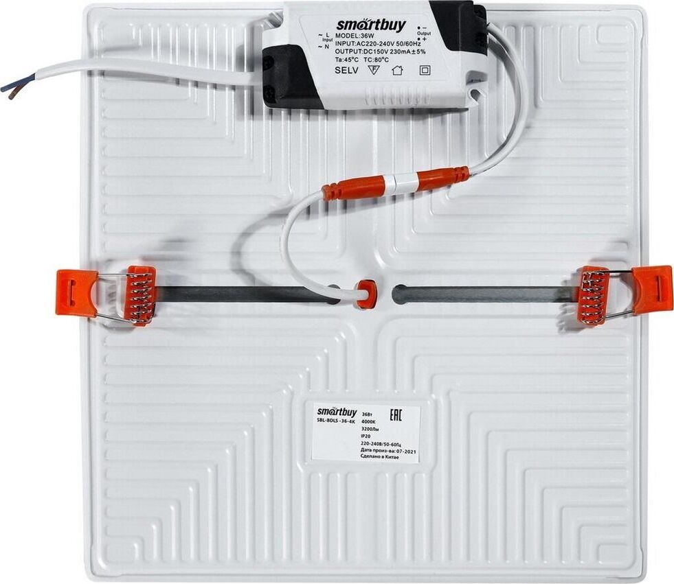 Характеристики SBL-BDLS-36-4K Мощность, Вт 36 Размеры, мм 225*225*25 Диаметр врезного отверстия, мм Регулируется 50-210 Вид ламп Светодиодная Температура света, К 4000 Световой поток, Лм 3200 Свет Дневной белый Цвет плафона Белый Материал плафона Пластик Вид питания От сети 220В Напряжение питания, В 220 Количество режимов 1 Тип выключателя Механический Упаковка Картонная коробка Комплектация Светильник светодиодный безрамочный - 1 шт. Гарантия 12 мес Страна-изготовитель Китай