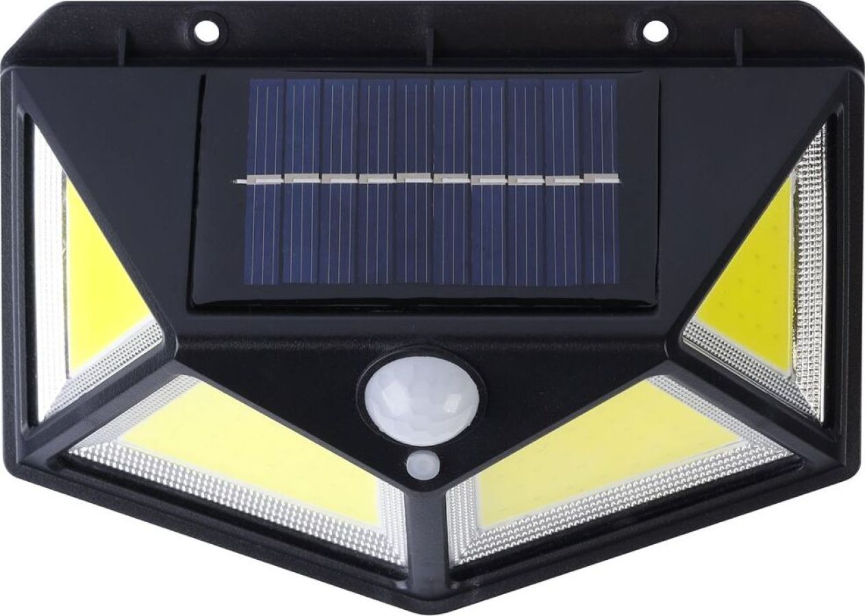 Материал: металл и пластик, Тип светового освещения: COB 10 Вт, Источник питания: аккумулятор Li-ion 1200 мАч, Солнечная батарея: 0,6 Вт (17% конвертация), Порог срабатывания датчика движения: <10 Лк, Дальность освещения: 12 м, Угол обзора: 120 градусов, Время отключения: 10 сек. Упаковка: цветная картоная коробка