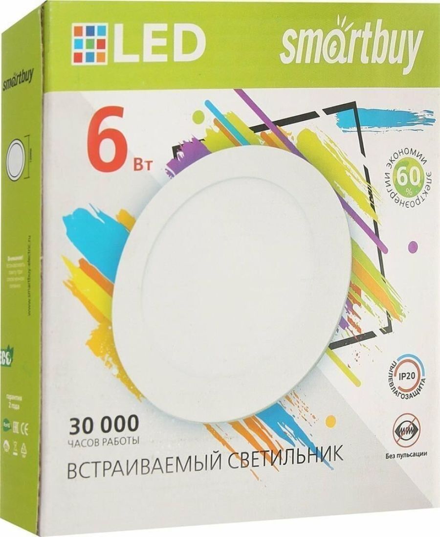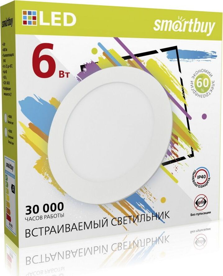 Характеристики SBL-DL-6-4K Цветовая температура, К 4000 Мощность, Вт 6 Световой поток, Лм 480 Светодиоды SMD Размер, мм 118*10 Вес, г 115 Индекс цветопередачи, CRI >80 Врезное отверстие, мм 103 Цвет корпуса Белый Напряжения питания, В 220-240 Пылевлагозащита IP40