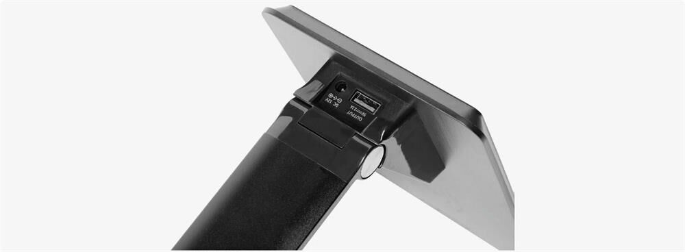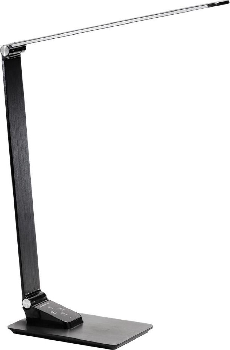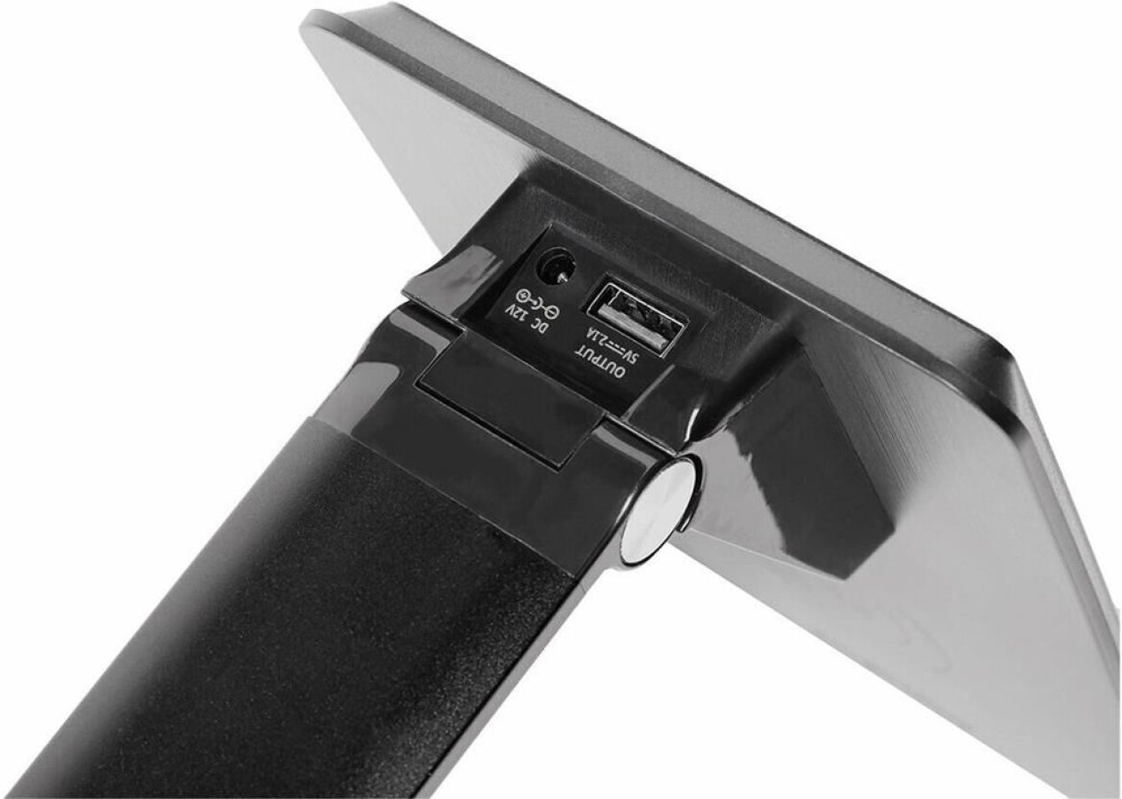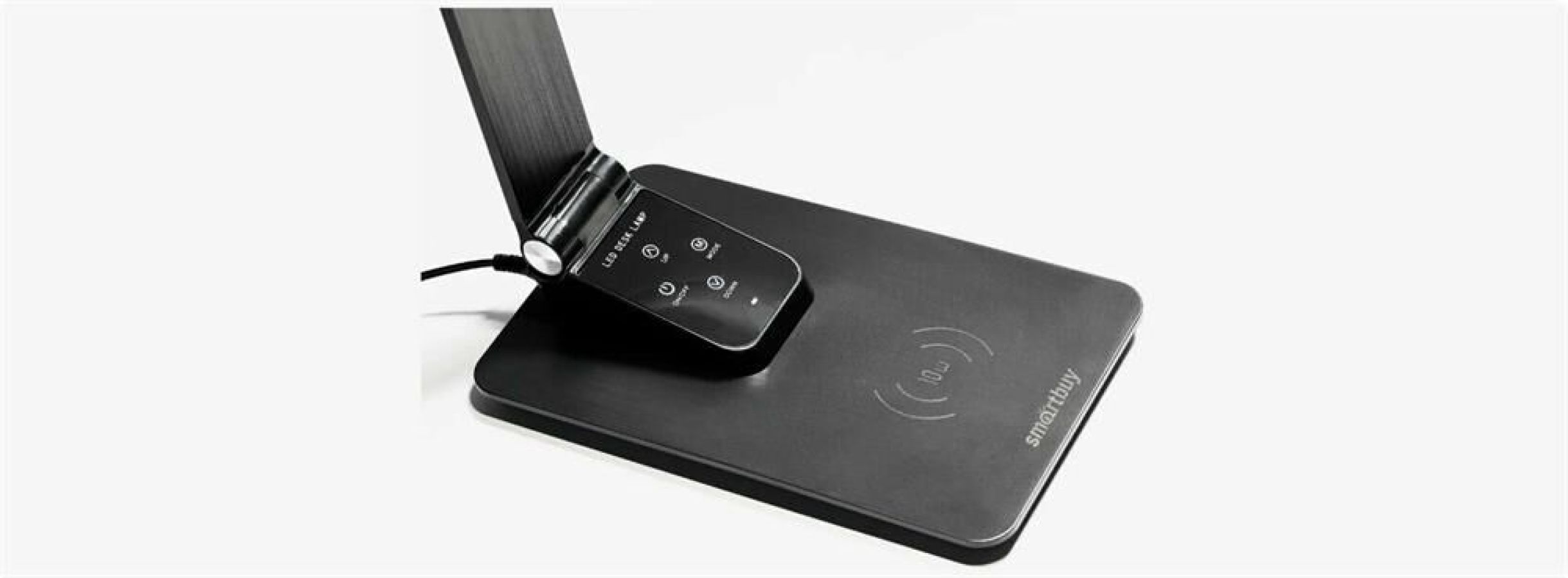 Сенсорное управление; Пять уровней яркости, пять режимов цветовой температуры; Функции беспроводной зарядки. Характеристики SBL-DL-11-wc-b Рабочее напряжение 240 В Максимальная мощность 11 Вт Тип лампы Светодиоды Длина провода, м 1,5 Размеры, мм 450*200*120 Вес, г 780 Цветовая температура 2700-6000К Световой поток 550 Лм Цвет корпуса Черный