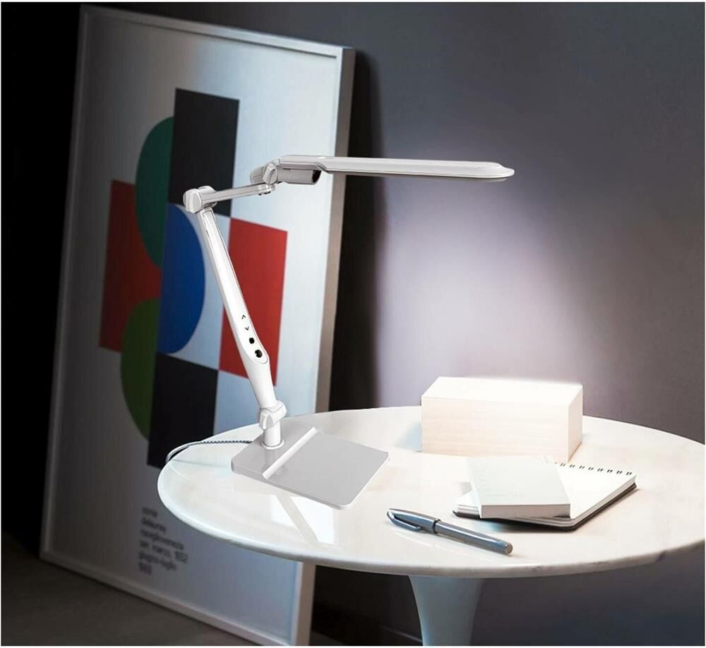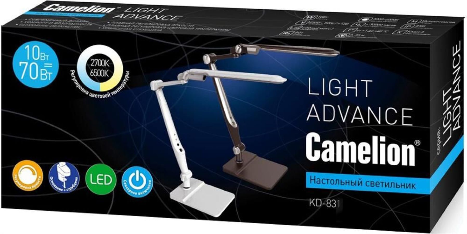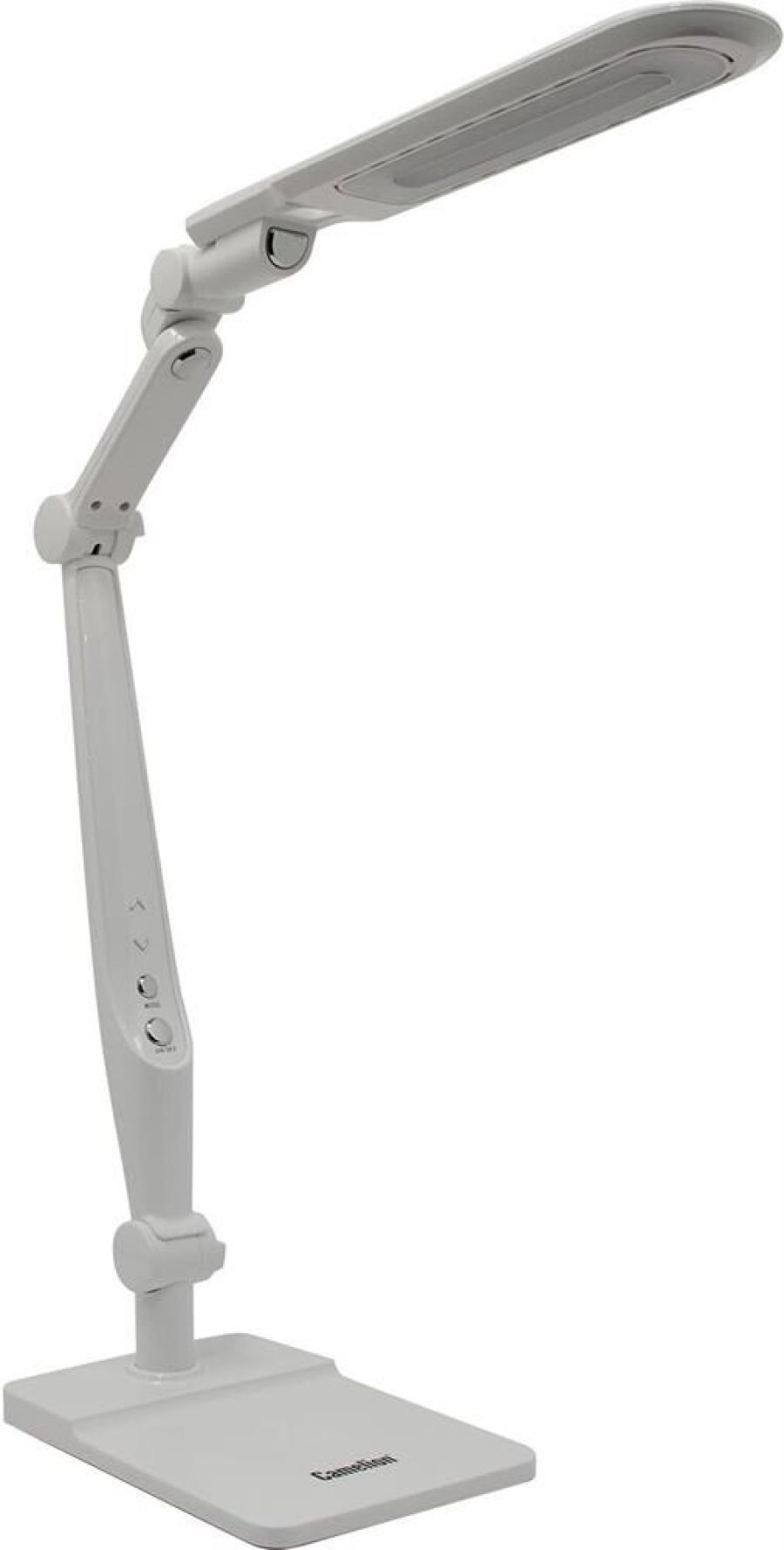Настольный светодиодный светильник (струбцина+основание) KD-831 C01 белый, размер 458х196х78мм, источник света - встроенные светодиоды, мощность 10Вт, питание 230 В, 50 Гц, световой поток - 600лм, пластик, длина провода 1,35 м. Регулировка цветовой температуры 3000-6000К.