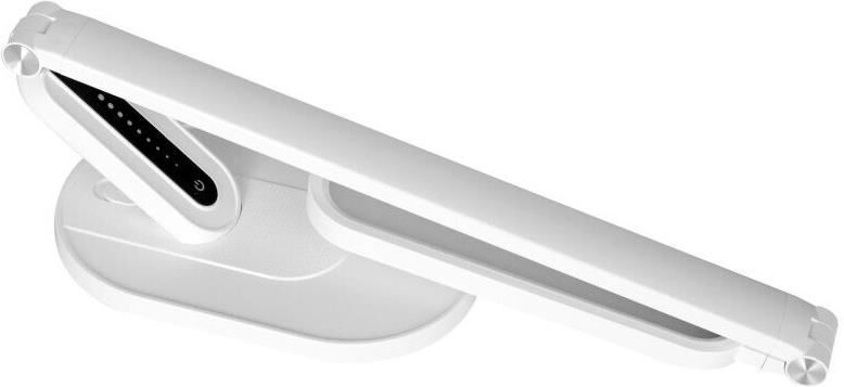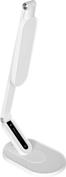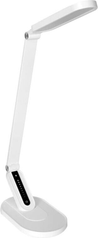 "Светодиодный настольный светильник Camelion KD-859 может использоваться в качестве источника местного освещения как в домашних помещениях, так в офисных и учебных учреждениях. Мощный (10 Вт), яркий (750 лм- макс.), с высоким индексом цветопередачи ( Ra > 85) имеет пять уровней регулировки яркости и пять режимов цветовой температуры (от 3000К до 6000К). Сенсорная панель управления световыми режимами находится на нижней части стойки. Светильник имеет USB-разъём 5В, 1А Стойка изготовлена из металла и пластика. Пластиковое основание прищелкивается к стойке перед установкой светильника, а во время транспортировки и хранения светильник занимает небольшой объём благодаря съемному основанию. Пластиковый плафон длиной 23 см имеет вытянутую форму . Максимальная высота плафона над уровнем стола в рабочем положении ~45 см. Длина провода питания – 150 см."