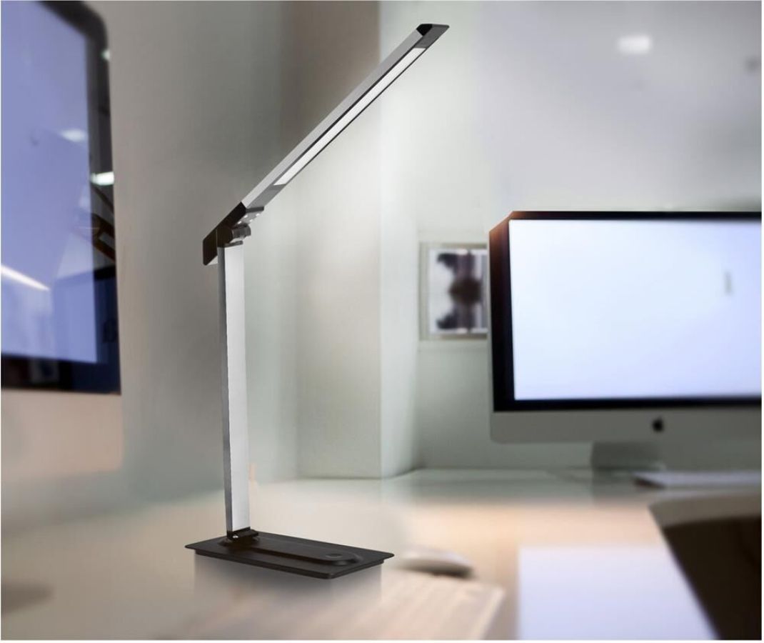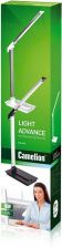 """Стильный дизайн светильника Camelion KD-846 украсит интерьер, оформленный в любом стиле. Плафон и стойка светильника изготовлены из алюминия, а основание -из прочного ABS-пластика. При транспортировке и хранении светильник может быть компактно сложен. Тип установки светильника : на основание. После установки светильника на стол возможно регулировать наклон стойки и наклон плафона. Источник света светодиоды 2-х температур свечения интегрированные в плафон светильника, позволяющие иметь 3 режима цветовой температуры (3000, 4500, 6000 К). Применение разных цветовых температур свечения позволяет создать комфортную атмосферу для работы, учебы или отдыха. Три ступени регулировки яркости. Мощность- 8 Вт. Максимальный световой поток 400 лм. На основании светильника расположена одна сенсорная кнопка управления светом: вкл/выкл, плавное изменение яркости, изменение цветовой температуры.