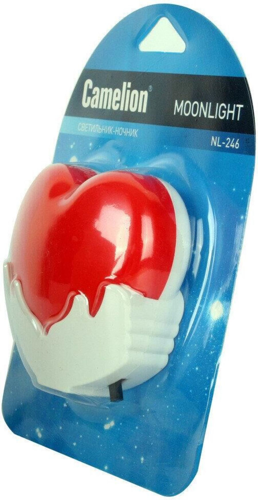 CAMELION NL-246 "Сердце" (LED ночник с выкл, 220В) Вкл/выкл: Выключатель Размеры: 70 x 65 x 60 мм Гарантия: 12 мес Материал корпуса: Пластик