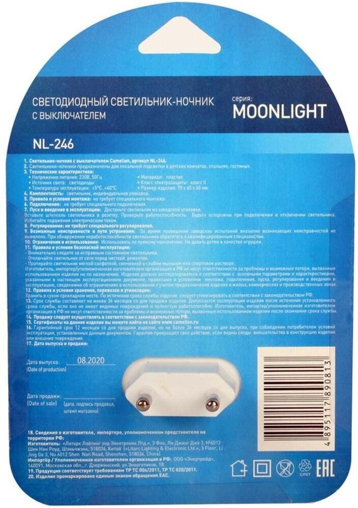 Комплектация: упаковка., Ночник , Напряжение: 220 В