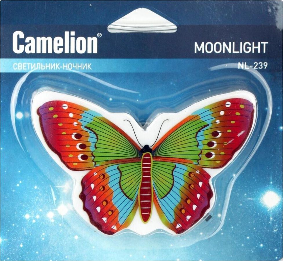 CAMELION NL-239 "Бабочка" (LED ночник с выкл, 220V) Вкл/выкл: Выключатель Мощность: 0,5 Вт Размеры: 80 x 70 x 60 мм Гарантия: 12 мес Материал корпуса: Пластик