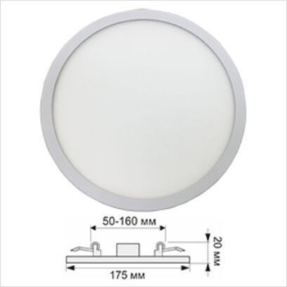 Ecola LED downlight встраив. Круглый даунлайт с креплением под любое отверстие (50-160mm) 15W 220V 4200K 175x20 Тип встраиваемый Мощность 15,0W Напряжение 220В Цветовая температура 4200К Размер 175х20 мм