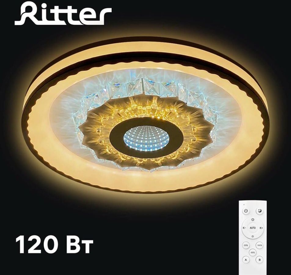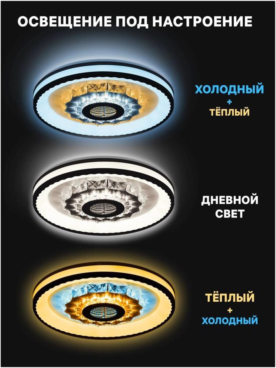 Люстра сд диммируемая CRYSTAL 3D с ДУ CLL-52368 120 Вт, 3000-6000К, 480х480х60мм, REV RITTER Светодиодная диммируемая люстра серии CRYSTAL 3D представляет собой светильник с металлическим основанием и акриловыми плафонами в современном стиле. Есть возможность изменения цвета на тёплый, холодный или естественный, настройка яркости свечения и режим ночника. Управление осуществляется с помощью радиопульта. Красота люстры серии CRYSTAL 3D достигается с помощью светового тоннеля с эффектом 3D. Лофт или модерн – в каждом из таких интерьеров люстра займёт достойное место и станет изысканным предметом декора вашего жилища.