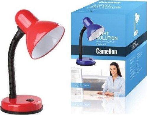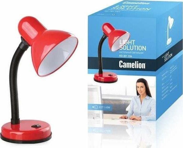 Настольный светильник Camelion KD-301 C04 красный, размер 200х140х130мм, источник света - ЛОН, тип лампы - 40/А/Е27, патрон - E27, мощность 40Вт, ~230 В, 50 Гц.