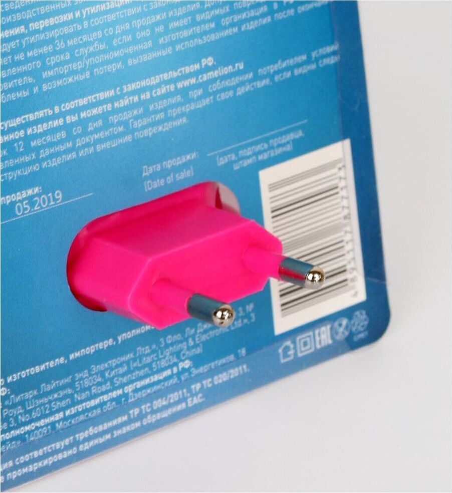 CAMELION NL-170 "Фонарик" (LED ночник с выкл, 220V) Вкл/выкл: Выключатель Мощность: 0,5 Вт Размеры: 110 x 75 x 70 мм Гарантия: 12 мес Кол-во в упаковке: 1 / 24 / 96 Источник света: Встроенные светодиоды Материал корпуса: Пластик