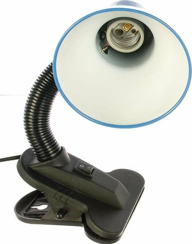 Светильник настольный с прищепкой Ultraflash UF-320P (230В, 60Вт, E27, ЛОН) C06 синий, размер 120х265х125мм, источник света - ЛОН, тип лампы - 60/А/Е27, патрон - E27, мощность 60Вт, ~230В, 50Гц.