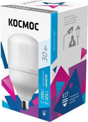 Светодиодная лампочка 30 Вт под стандартный цоколь Е27 для светильников 220В. По яркости заменяет лампы КЛЛ 45 Вт и ДРВ 125 Вт. Используется в купольных, консольных, и парковых светильниках, габариты лампы 80х135мм. Работает в диапазоне от 174В до 265В - не перегорит и не потеряет яркость при скачках напряжения в сети. Качественный свет, как у бытовых ламп, срок службы 30 000 часов. Цвет свечения лампы - 4500 К нейтральный белый – для общественных зон и пространств. 2 года гарантии