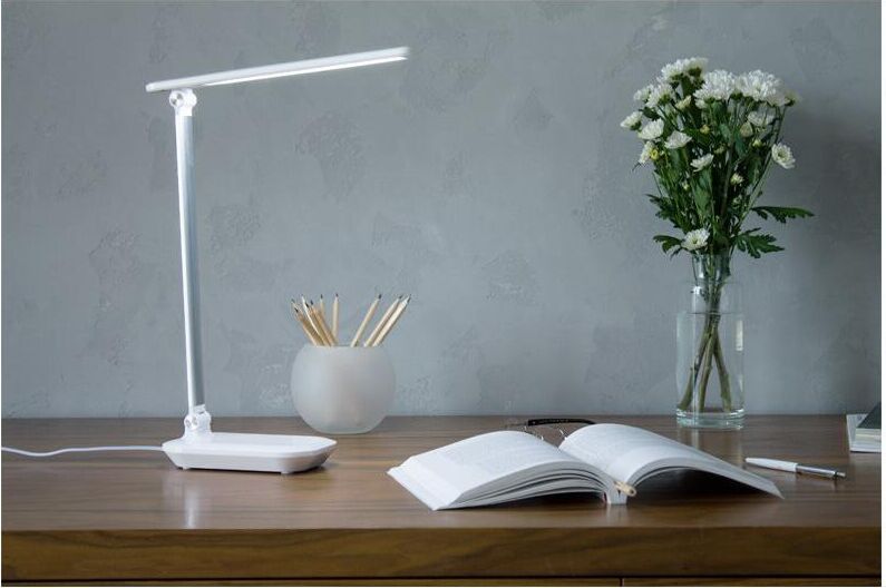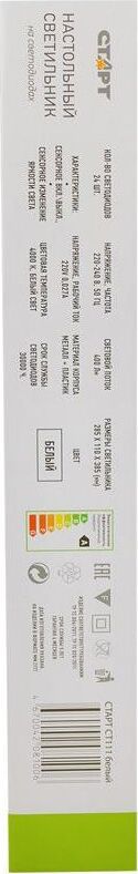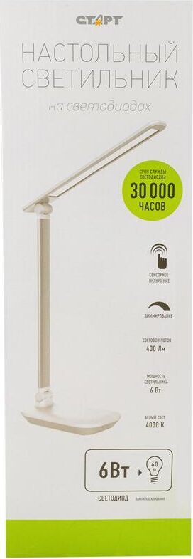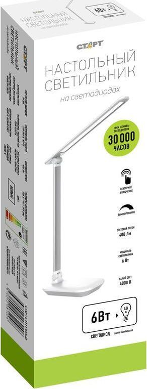 Потребляемая мощность 6W Световой поток 400 Материал корпуса металл + пластик Сенсорный выключатель, с диммером Цвет: белый, Размер: 285*110*385мм Длина шнура 1,5м