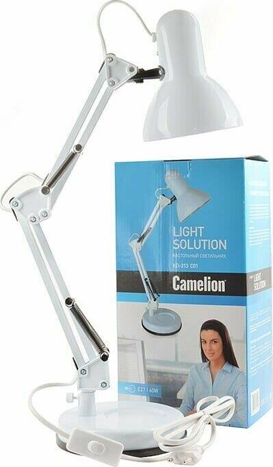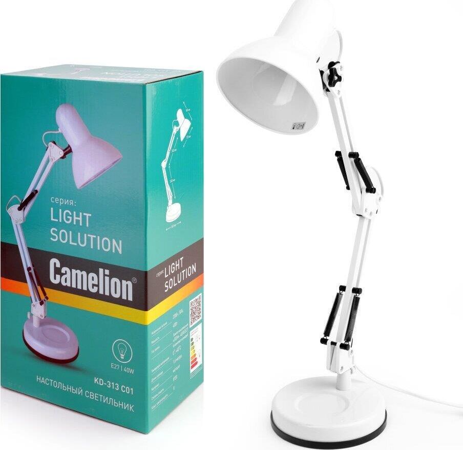Настольный светильник Camelion KD-313 C01 белый, размер 285х170х170мм, источник света - ЛОН, тип лампы - 40/А/Е27, патрон - E27, мощность 40Вт, 230 В, 50 Гц/12 В.