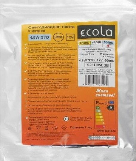 LED strip STD 4,8W/m 12V IP20 8mm 60Led/m 6000K 4Lm/LED 240Lm/m светодиодная лента на катушке 5м
