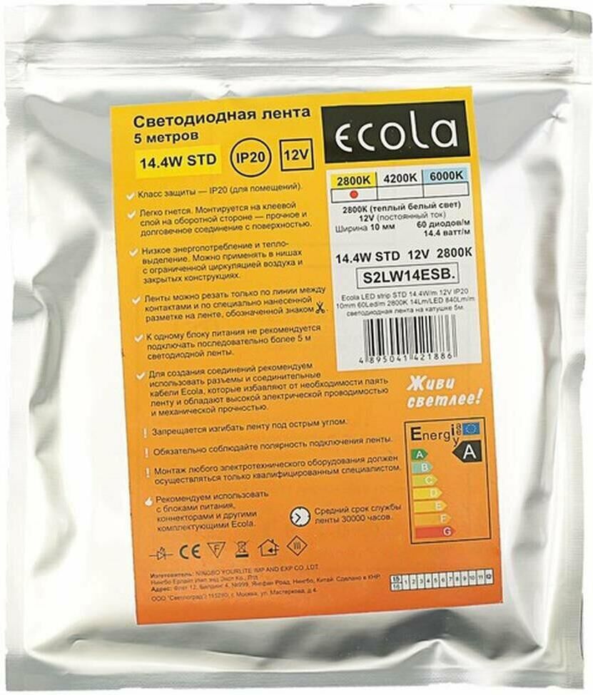 14.4W/m 12V IP20 10mm 2800K светодиодная лента на катушке 5м. (ЦЕНА ЗА 1 КАТУШКУ)