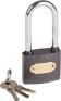 Материал корпуса: чугун Материал дужки: сталь Тип замка: навеcной Количество ключей в комплекте: 3 Тип ключа: английский Тип механизма секретности: цилиндровый Автоматическое запирание: да Длина замка: 50 мм Ширина замка: 18 мм В открытом положении ключ вынимается.