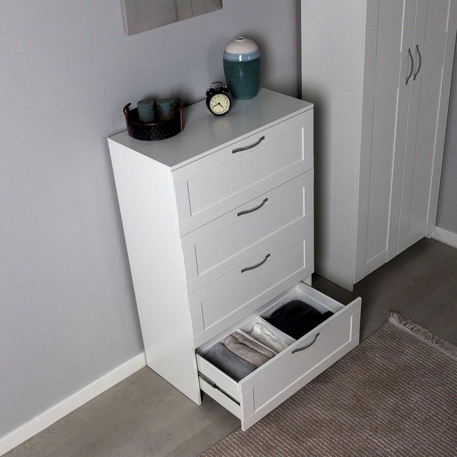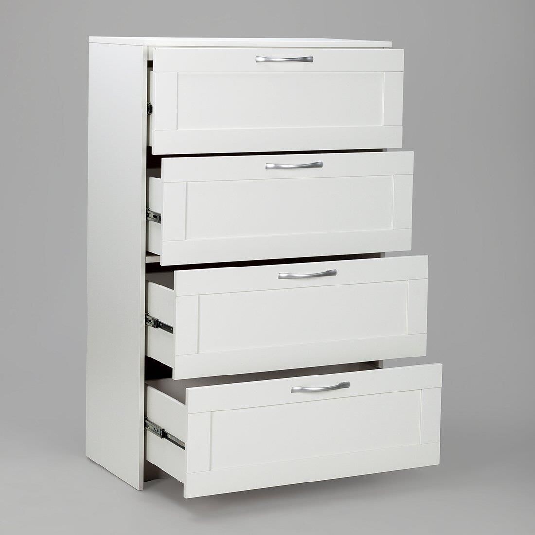 Комод СИРИУС с четырьмя наружными выдвижными ящиками, 782х412х1234, цвет Белый. Изготовлен из кашированного ДСП толщиной 16 мм. Крепится к стене. Гарантийный срок для жилых помещений 24 месяца, для общественных помещений - 18 месяцев.
