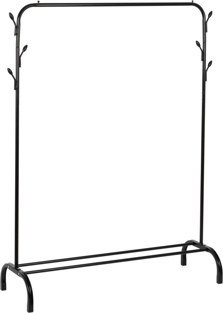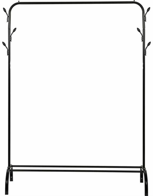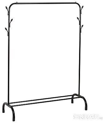 Напольная вешалка с одной перекладиной. Материал: сталь, полипропилен. Крепление трубок на шурупах. Размер 150*110*40см. Выдерживаемая нагрузка - 30кг. Упаковка - картонная коробка.