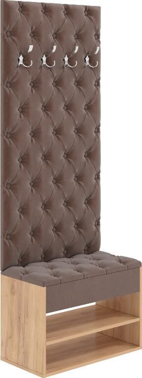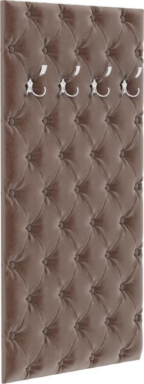 Практичная настенная вешалка Дения обеспечит стильное оформление входной зоны и при этом займет совсем немного места. - Щит крепится к стене. - Благодаря четырем трехрожковым крючкам комфортно разместит 12 предметов одежды; - Щит обит приятной на ощупь тканью и украшен каретной стяжкой с пуговицами в тон ткани. Ткань дышащая, проста в уходе, устойчива к истиранию и действию УФ-лучей. - Благодаря каретной стяжке изделие долго сохраняет эстетичный внешний вид и комфорт. - Упругий наполнитель обеспечивает исключительную мягкость и хорошо держит форму. Размер щита 136,8х66,4 см. Глубина щита вместе с крючками 11 см.