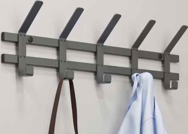 Назначение Для размещения одежды. Материал сталь, полимерное покрытие. Индивидуальная упаковка 60,4 х 17,4 х 9,1 см. Габариты (Д*Ш*В) 58 х 8,5 х 16,8 см. Максимальная нагрузка, кг до 7 кг на крючок. Уход Протереть влажной тряпочкой с мыльным средством. Температура применения, °C от 0 °C до +30 °C.