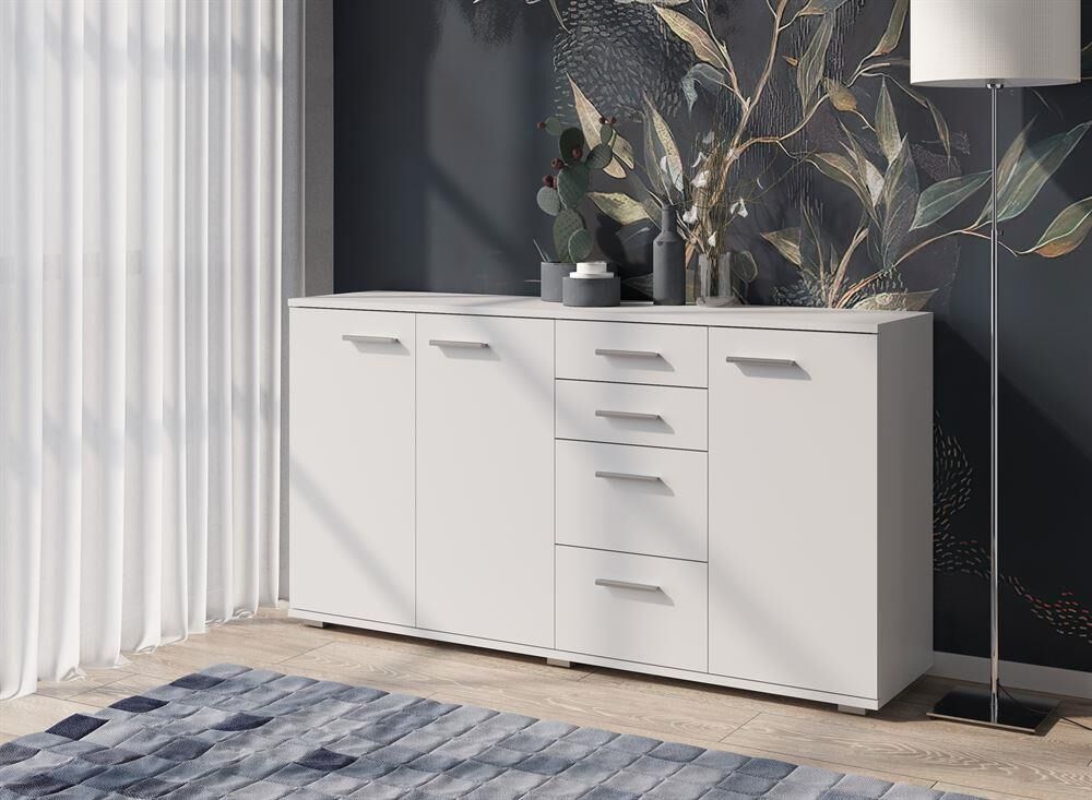 Комод из 6 закрытых отсеков с полками за распашными дверцами, а также четырех выдвижных ящиков с роликовыми направляющими. Корпус и фасад изготовлены из ЛДСП 16 мм. Два цвета на выбор - Белый, Дуб Сонома/Белый. Функционально - компактные габариты изделия займет минимум пространства и поможет организовать универсальную систему хранения. Эстетично - универсальное современное цветовое решение. Практично - вместительный комод с удобной конструкцией гармонично впишется в любой интерьер. А так же столешницу комода можно использовать в качестве тумбы для ТВ. Размер изделия (ШхВхГ) 137,8 х 74 х 34 см.