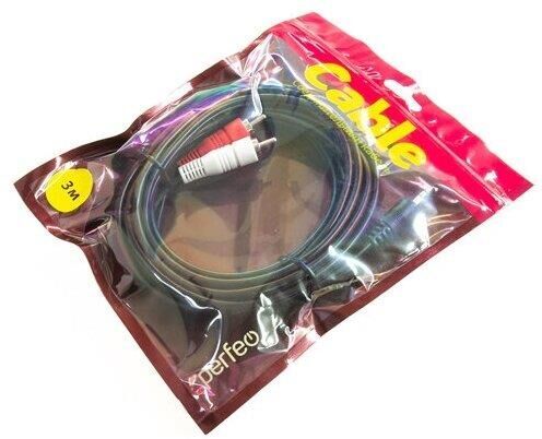 Аудиокабель Jack 3.5 мм (стерео), разъем 1 - Jack 3.5 мм вилка, разъем 2 - 2хRCA вилка, контакты разъемовпокрыты никелем, молдинг разъемаполивинилхлорид (PVC), длина кабеля - 3,0 м.