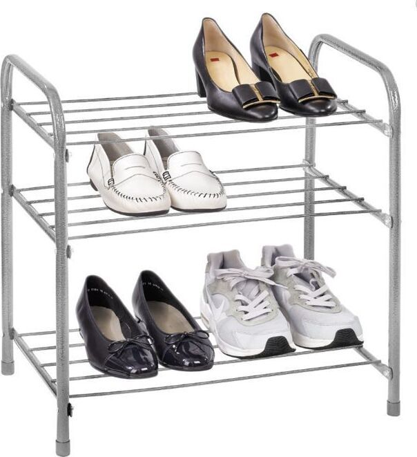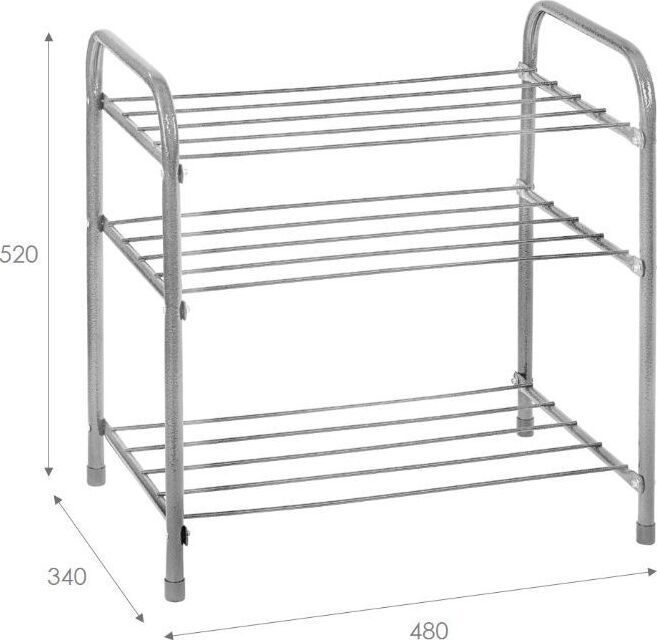 Этажерка для обуви 3-х ярусная. ЦВЕТ: серый. РАЗМЕР ИЗДЕЛИЯ: 340 x 480 x 520 мм. МАТЕРИАЛ: металл + полипропилен.