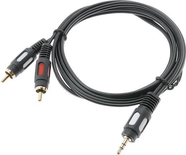 Предназначен для передачи аналогового аудиосигнала и широко применяется для видео- и аудиосистем. С одной стороны шнура располагается штекер разъема 3.5 Stereo, а с другой — 2 штекера разъема RCA (традиционный стандарт для аналоговой видео- и аудиотехники). С его помощью можно разнести двухканальный звук (стерео) на две точки воспроизведения. Разъемы выполнены из легкого и прочного пластика. Контакты штекеров покрыты слоем золота, нанесенного по технологии вакуумного напыления для улучшения качества передачи сигнала. 1.5 метра.