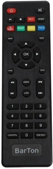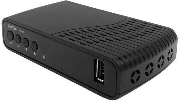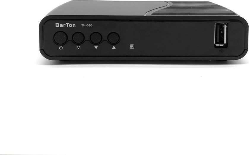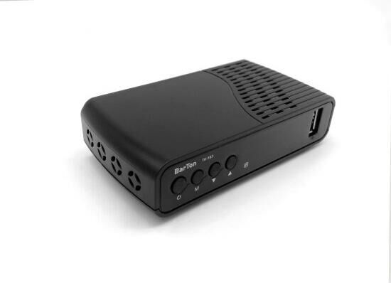 Ресивер для приема 20-ти бесплатных Телевизионных каналов от обычной антенны DVB-T2. Цифровой эфирный приемник BarTon TH-563 с поддержкой стандарта сжатия MPEG4 и режима Multiple PLP. Предназначен для приема не кодированных (открытых) каналов эфирного вещания DVB-T2. Приёмник позволяет просматривать изображения в формате высокой четкости HDTV. Медиа проигрыватель с поддержкой основных видео-, фото-, и аудиоформатов. Функция записи по расписанию, отложенного просмотра (при подключении внешнего USB носителя). Поддержка разрешения видео: 576i/720p/1080i/1080p. Формат экрана 16:9 /4:3 Расширенный телетекст и электронная ТВ программа на 7 дней. Внимание: Данный цифровой приемник не предоставляет доступ к спутниковым услугам " Триколор ТВ"