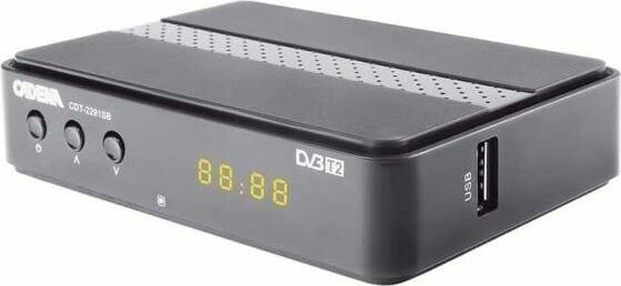 Приставка для цифрового ТВ CADENA CDT-2291SB предназначена для просмотра бесплатного цифрового эфирного телевидения высокого качества. Поддерживаемый стандарт DVB-T/T2. Высокочувствительный тюнер обеспечивает стабильное качество принимаемого сигнала. При подключении внешнего USB устройства можно записывать транслируемые телевизионные каналы, а так же воспроизводить мультимедийные файлы и изображения на телевизор. Приставка имеет поддержку функции родительского контроля. Меню, Пульт ДУ и руководство пользователя полностью на русском языке. На лицевой панели расположены дисплей и кнопки. На задней панели расположены антенный ВЧ вход; разъемы HDMI и RCA; гнездо подключения внешнего блока питания. На боковой панели расположен порт USB 2.0. В комплектацию устройства включены кабель 3RCA – 3RCA, адаптер питания, пульт ДУ, батарейки, руководство пользователя и гарантийный талон. Подарок от Триколор: ПРОМОКОД на 45 дней просмотра онлайн-кинотеатра «Триколор Кино и ТВ».