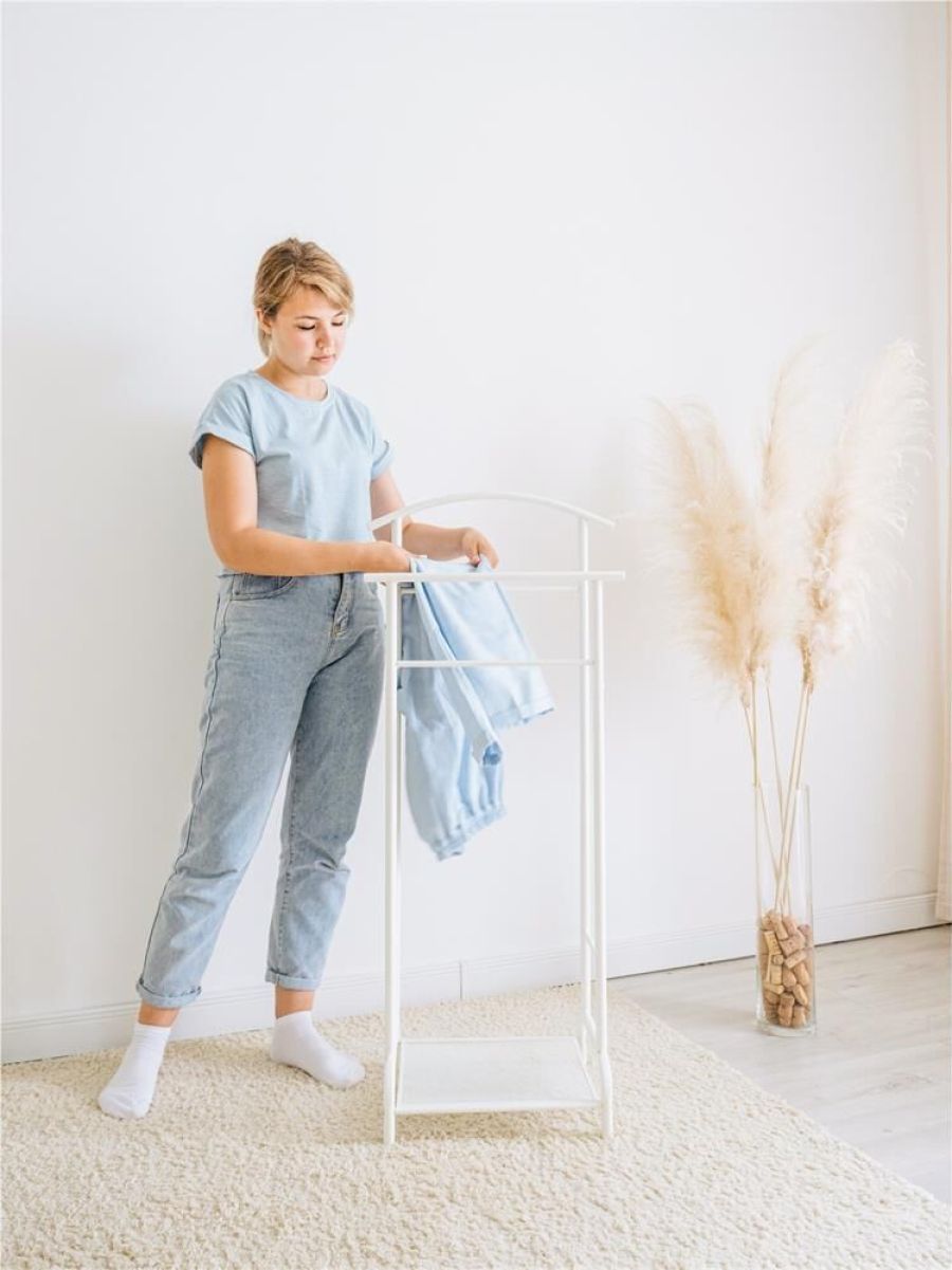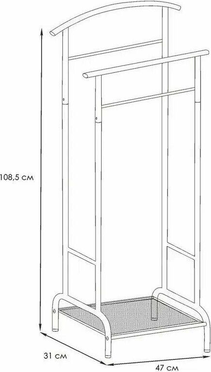 Назначение Для размещения одежды. Материал Сталь, полимерное покрытие, пластик. Габариты (Д*Ш*В) 47х30х108,5 см. Максимальная нагрузка, кг до 3 кг на плечико.