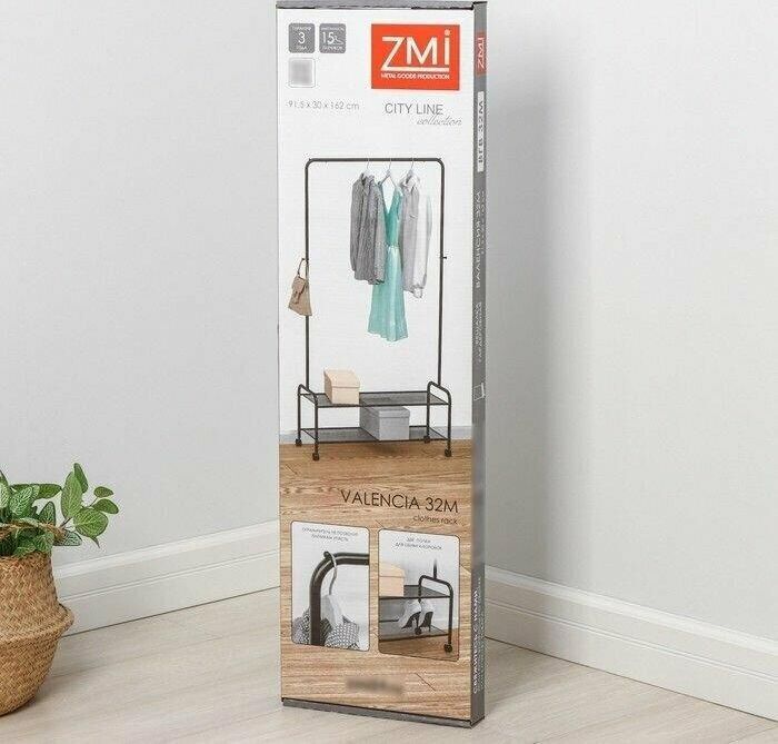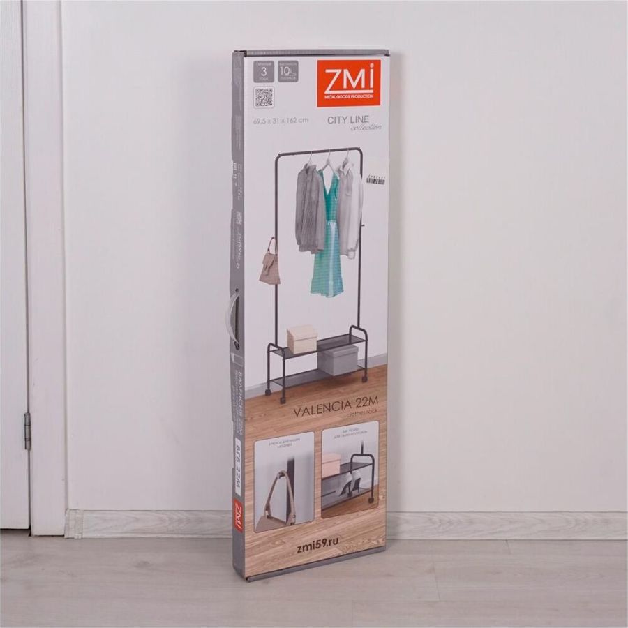 Комплектация: Вешалка гардеробная "Валенсия 22М" с двумя полками, на колесах, металлик