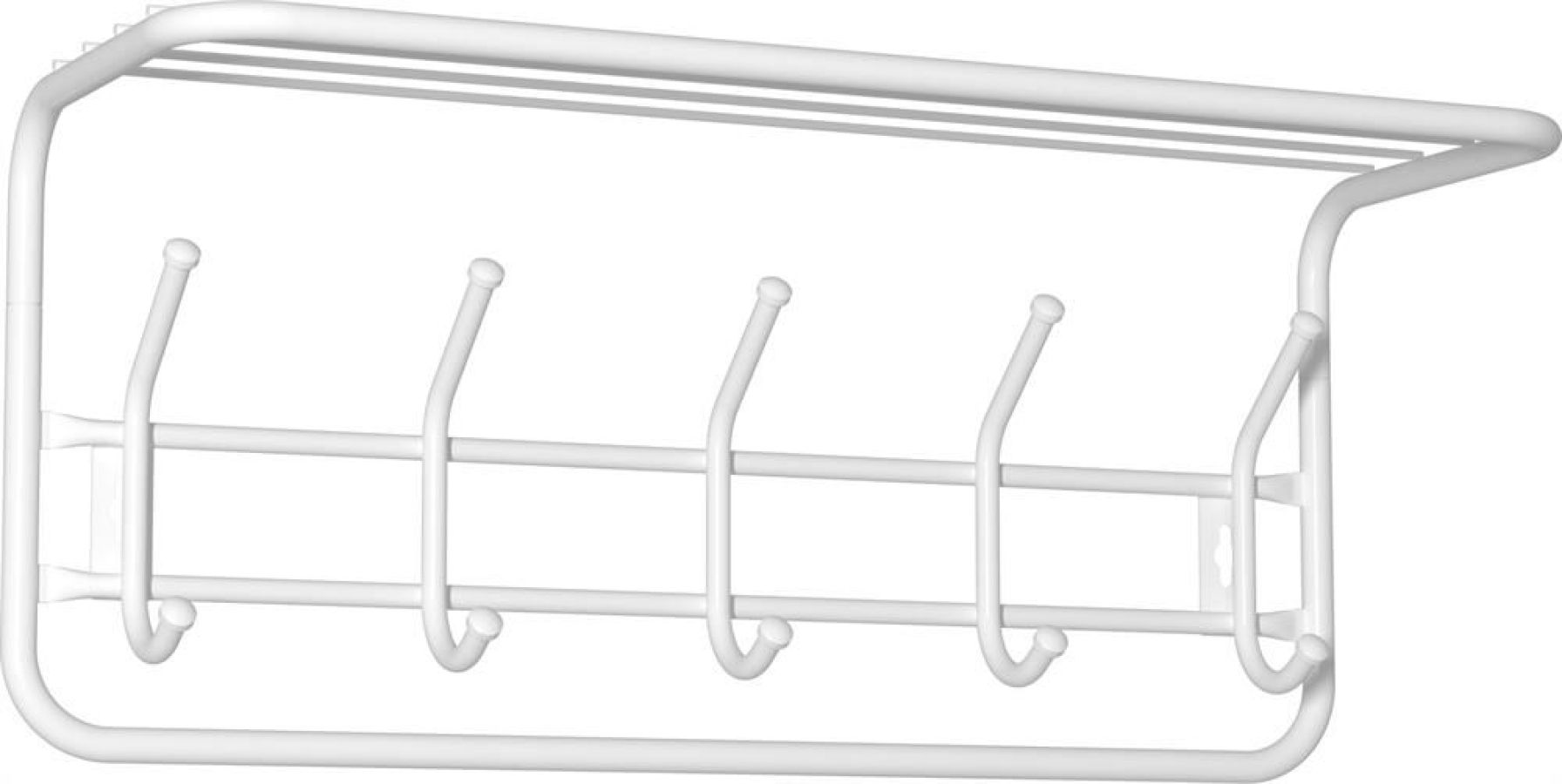 Надежная сборно-разборная конструкция. — компактная вешалка с 5-ю крючками. — удобная полка для хранения головных уборов. — допустимая нагрузка до 5 кг на крючок. — Удобный пластиковый крючок для мелочей. — Расстояние между крепёжными отверстиями 500 мм. Материал Сталь, полимерное покрытие. Габариты (Д*Ш*В) 60х22х26,5 см.