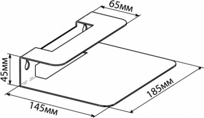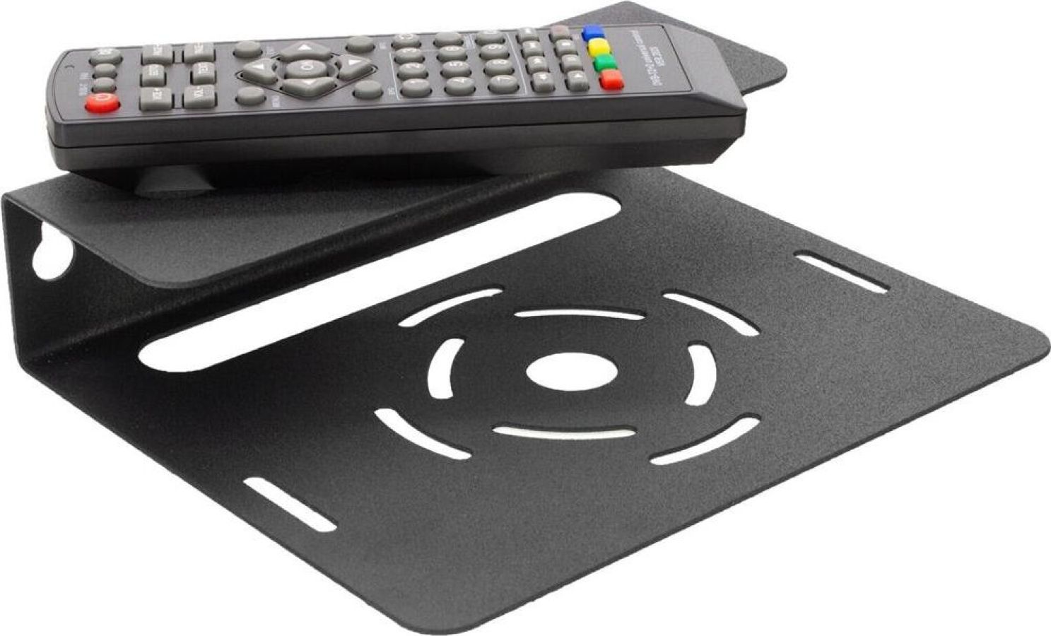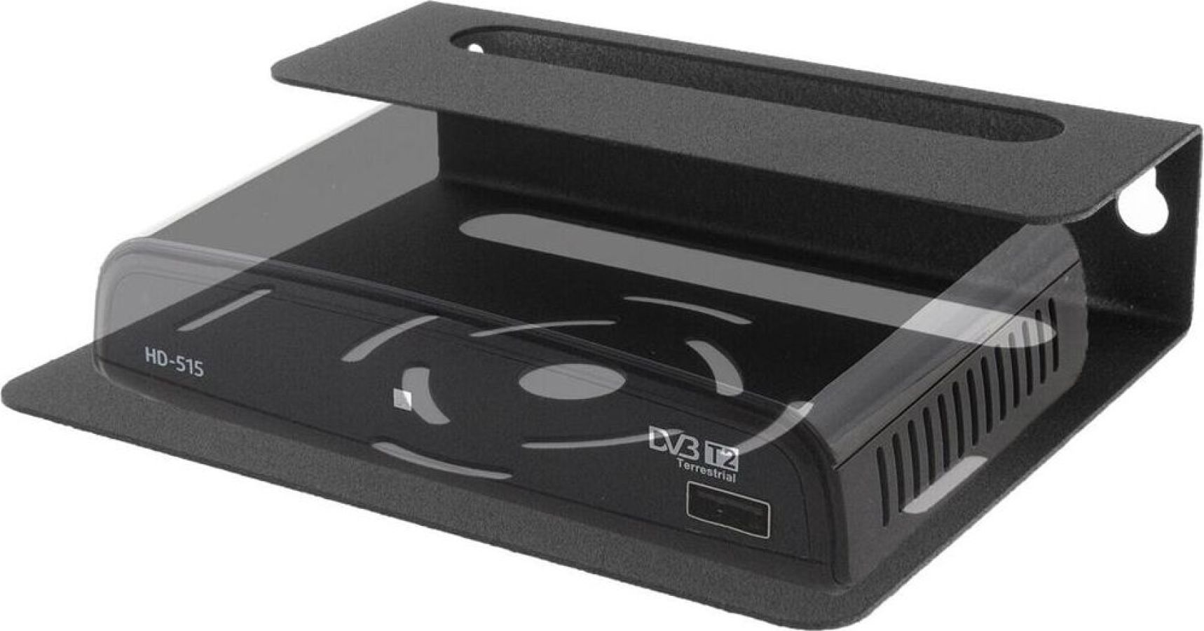 Подставка для ТВ тюнеров, цифровых ресиверов, ресиверов ТРИКОЛОР, Wi-Fi роутеров, телевизионных пультов и др.. Макс. нагрузка составляет 1,5 кг, размер 185х45х145 мм. Простая установка.