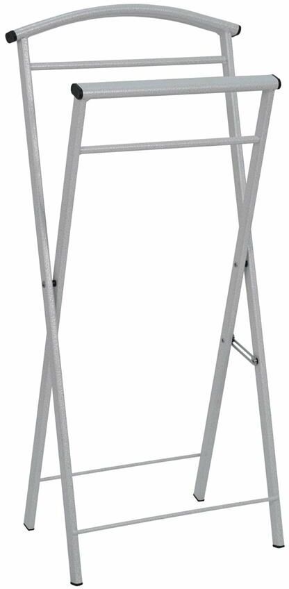 Отличительные особенности: - надежная сварная конструкция. - вместительная модель, на которую с легкостью можно уместить полный комплект костюма – пиджак, рубашку, брюки и галстук. - изящная форма изделия прекрасно впишется в любой интерьер. - В сложенном состоянии практически не занимает место. - общая нагрузка до 10 кг. Габариты (Д*Ш*В) 35,5*23,5*76 см. Материал Сталь, полимерное покрытие, пластик.
