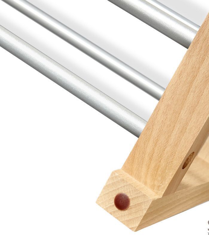 Размер изделия: Ширина 650 мм Глубина 290 мм Высота 320 мм Выполнена из массива древесины, брус 34х24 мм., и металла, труба 12х0,8 мм. Расстояние между полками: 140 мм. Расстояние от пола до нижней полки: 100 мм. Ширина одной полки позволяет свободно вместить до 3 пар обуви. Полка штабелируется, что позволяет экономить место и хранить больше обуви. Максимальная распределенная статическая нагрузка на одну полку - 10 кг. Деревянные детали могут немного отличаться по оттенку из-за неоднородности структуры дерева.