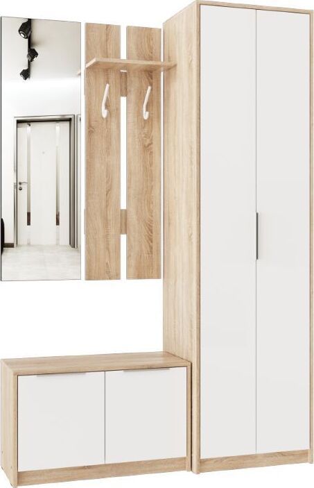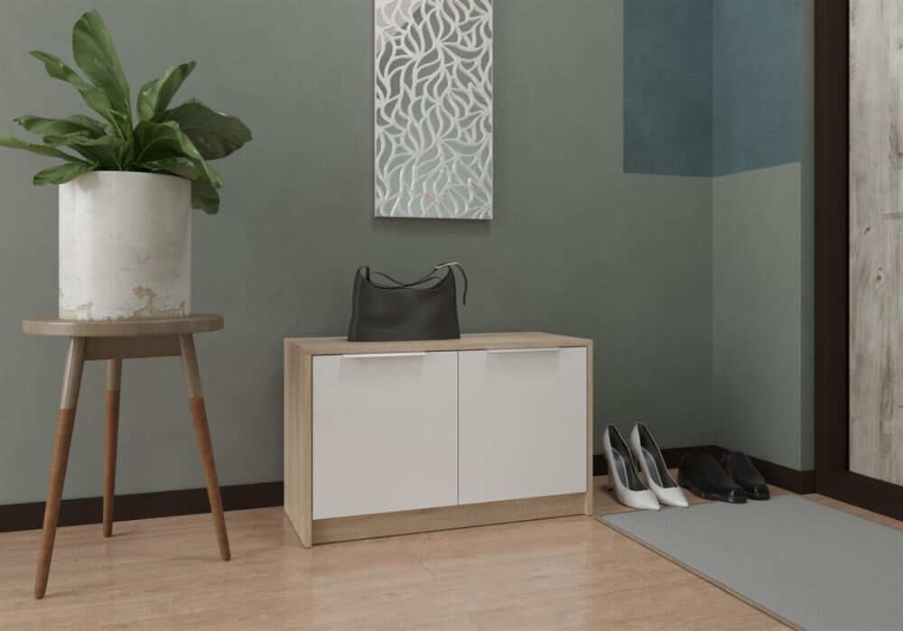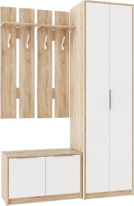 Тумба для обуви низкая Нордик выполнена в стиле минимализма. Сочетание декоров натурального дерева и белого цвета подчеркнет современный стиль Вашего интерьера. Компактные размеры позволяют разместить тумбу даже в небольших прихожих, создавая уют и порядок. В тумбе удобно хранить высокую обувь. Гармонично тумба будет смотреться в сочетании с другими элементами прихожей Нордик. Материал каркаса: ЛДСП дуб сонома. Материал фасадов: ЛДСП белый. Ручки: металл. Коллекция Нордик. размеры: ШхВхГ (803х490х360)мм. Цвет фасадов Белая Аляска. Цвет каркасов Дуб сонома светлый. Материал фасадов ЛДСП. Материал каркасов ЛДСП. Тип мебели Тумба для обуви. Срок службы (мес.) 120. Гарантия (мес.) 24.